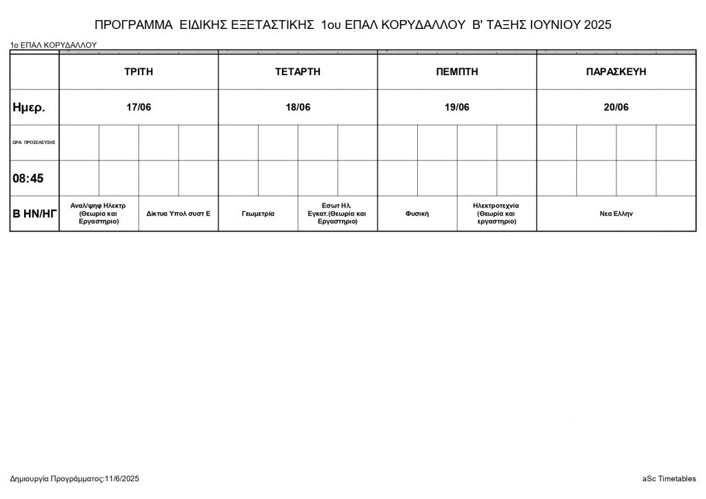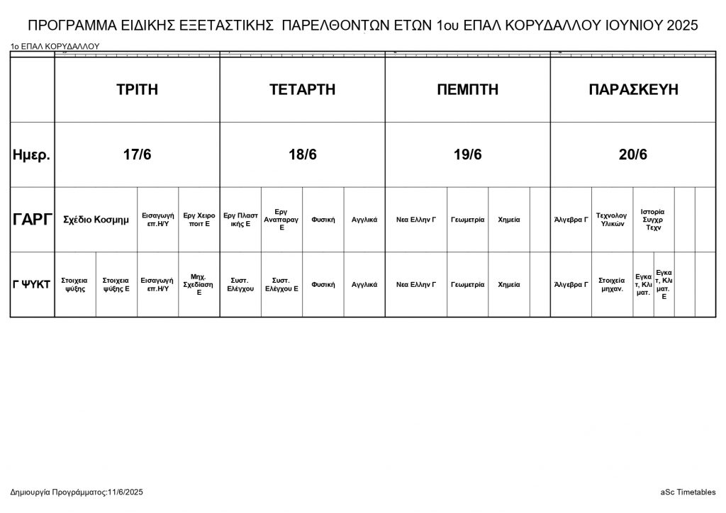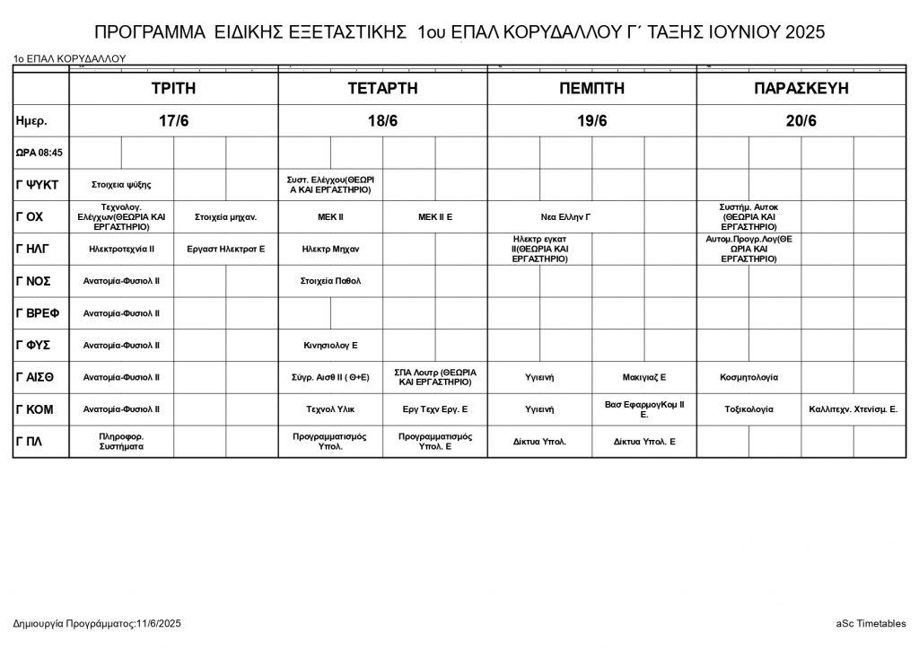 ΠΡΟΓΡΑΜΜΑ ΕΠΑΝΑΛΗΠΤΙΚΩΝ ΕΞΕΤΑΣΕΩΝ ΙΟΥΝΙΟΥ 2025 (ΕΙΔΙΚΗ ΕΞΕΤΑΣΤΙΚΗ)
